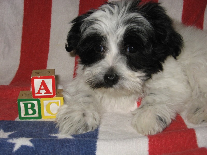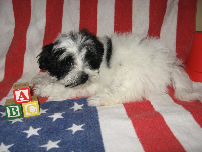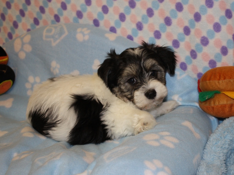 Blitzen is a gorgeous black & white spotted purebred Havanese male!