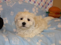 Motor is a precious white purebred Havanese male.