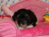 is a unique black, white, and brown purebred Havanese female! Going to